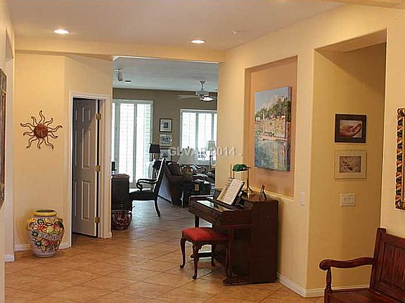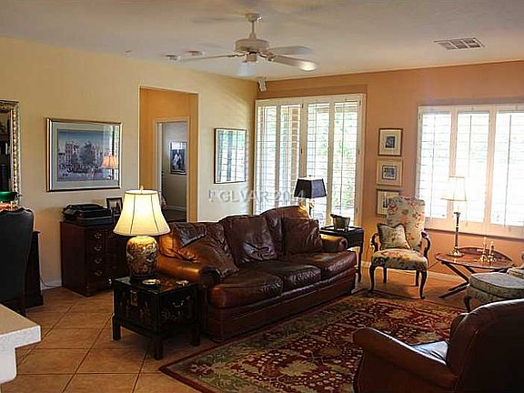 What can we say? Few homes come up for sale in this picturesque neighborhood in The Ridges. This 3 bedroom/2.5 bath home has been well-maintained, with tile in main areas, hardwood floors in all bedrooms, and shutters throughout. Oversized entry hall leads to den w/double door entry, formal dining room, great room with surround sound, and huge master bedroom with hardwood floors, sitting area and door to patio. The master bath is generously sized featuring a garden tub, double sinks, separate shower, separate water closet, and big walk-in closet. Lovely backyard with covered patio, BBQ stub, lawn, and privacy. Close to many public and private schools including Goolsby Elementary, Alexander Dawson, Faith Lutheran, Merryhill, and Bishop Gorman. The house is located directly across the street from the neighborhood park, and just around the corner from the community park. Don't miss out! Homes in this neighborhood don't come on the market every day, and when they do, they go FAST!