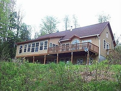 Single Family Home for sale by owner in Port Leyden, NY 13433. Ranch-type, walk out basement plus half loft on third floor. Incredible views overlooking Black River. Property goes to river, and to one of its best fishing spots. Swimming, fishing, kayaking, hiking directly from property. Located within a few minutes of major snowmobile trails connecting to famous Tug Hill area. Home within seven minutes of the lovely recreational village of Boonville, which hosts one of the major summer festivals in the entire state. Only minutes to numerous, high quality restaurants as well as to shopping, etc. Enormous privacy. Two dog kennel enclosures within 10 feet of house. Highest quality building materials, including oak flooring. Cathedral ceiling in living room giving enormous sense of space and openness. Rear deck overlooking the river. Note that the Black River has been the subject of major documentaries on the early history of logging in the Adirondack region. Within 3 minute drive of the house is a local basketba