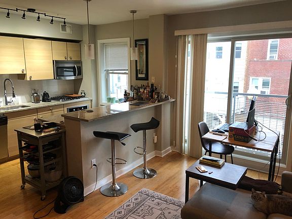 Great one bedroom with juliet balcony, lots of natural light and sun. New Nest smart thermostat, kitchen sink faucet, disposal, washing machine, and toilet. Bosch stove and oven, whirlpool dishwasher. On quiet street blocks from Petworth metro, dining on 11th St., and Safeway. No smoking, pets OK. Street parking in front of building. Rent includes water; tenant responsible for internet, electricity, and gas.