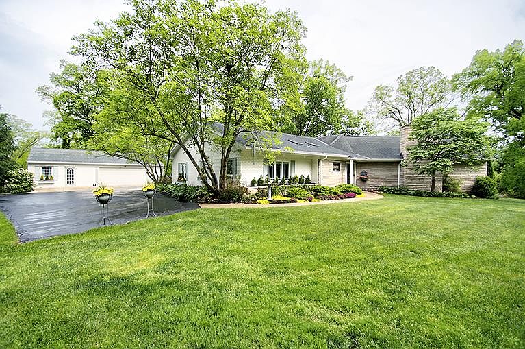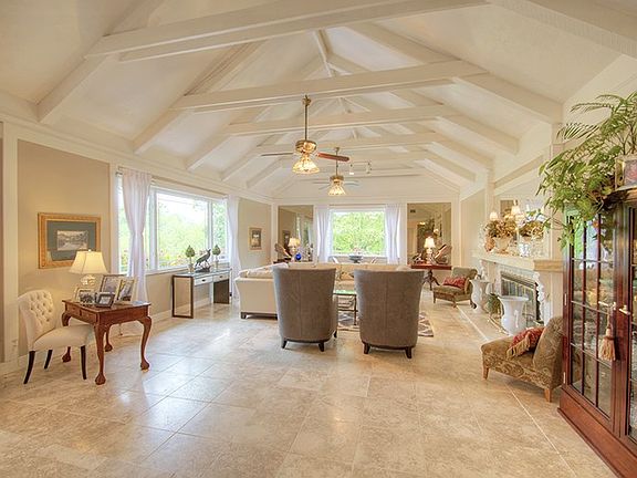 Beautiful ranch on 5 acres of privacy! Open flr plan W/ beamed cathedral ceilings. Huge living room w/16' ceilings,WBFP & a wall of windows over looking the yard. Travertine flrs in the foyer,LR,DR, kitchen & FR. New kitchen w/ S/S appliances, quartz tops, huge island.European cabinetry w/organizational features. Master suite boasts new lux bath.3 car detached garage has a one room efficiency apt