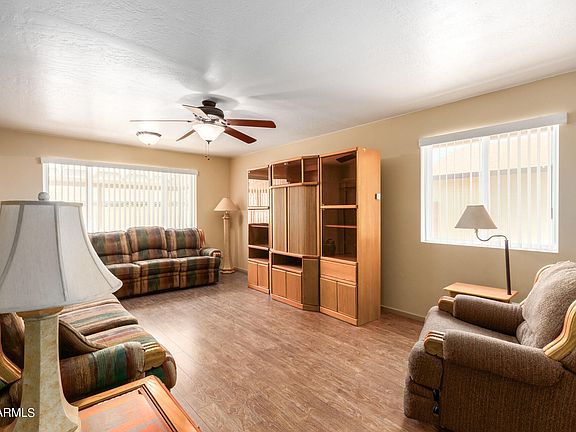 *NEW PRICE AGAIN!*4 Spacious Bedrooms*3 Baths*2 Primary Bedrooms with Ensuite Bathrooms*NO HOA*Energy Efficient Solid Block Construction with Energy Efficient Windows*Womack Built Home*Kitchen with Complete Appliance Package*Counter and Cabinet Space Galore*Big Drawers in Kitchen*Walk-in Pantry*Skylight*Inside Laundry-Washer and Dryer Included*2 Car Carport Plus Driveway Holds 4 Cars*Grassy Backyard with Covered Patio*Lots of Storage Space*Great Location*Living Room Furniture Included* There is an available custom fit ramp for the step down at primary bedroom #1 and the bathroom sink is wheelchair accessible. The carport could easily be converted to a garage or additional living space. There is plenty of storage here, including a storage space at the end of the carport, many closets inside, and 2 sheds in the backyard. This home has been meticulously maintained and cared for by its owner of 35 years. This location in the coveted community of Melrose Gardens is close to freeway access, several colleges, Peoria Sports Complex, and State Farm Stadium.