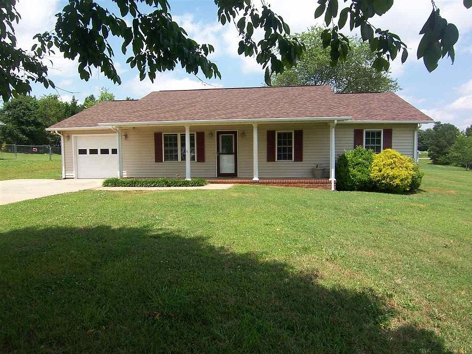 3 bedroom 2 bath ranch home with rocking chair front porch and a large rear patio. The home has approximately 1240 square feet of heated living area and sits on approximately .46 acre in Branchwood subdivision between Shelby and Polkville. The living room has a corner fireplace with gas logs. The kitchen has a pantry and all of the kitchen appliances remain. The master bedroom has a walk-in closet. This home has an attached single car garage. The detached storage building and the play set in the back yard remain.