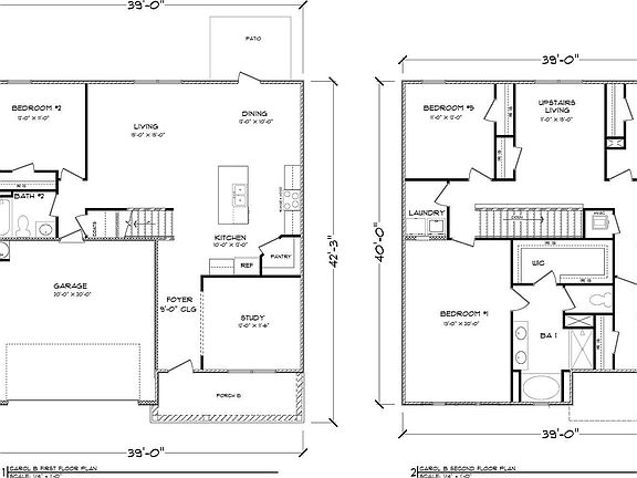 Step into the elegance of a spacious and inviting foyer leading to a versatile open study that could serve as your home office or a sophisticated formal sitting area. The heart of this home is the expansive living area, seamlessly integrating the kitchen and dining space, ideal for entertaining or relaxing with loved ones. The kitchen is a chef's delight, featuring a central island with additional seating, a walk-in pantry, and ample counter space flanked by sleek cabinetry. The highlight of this home is the guest bedroom and full bathroom on the main level which offer the convenience of privacy and comfort. Continuing to the second level, you will find four bedrooms and an additional living area that could be used as a game room or study area. The primary bedroom is separate from the additional bedrooms and offers a peaceful sanctuary with an ensuite bathroom, dual sink vanity, spacious shower, and separate soaking tub. The additional bedrooms are located on the opposite side and share a full bathroom with a shower and tub combination. There is a laundry room conveniently located on the second level and has space for a full size washer and dryer. This home's thoughtful design includes an upstairs laundry room, adding to the convenience of everyday living. For more information on this floor plan, contact a D.R. Horton sales representative.