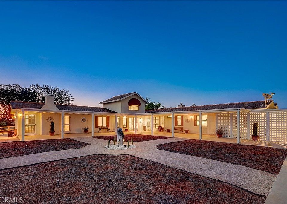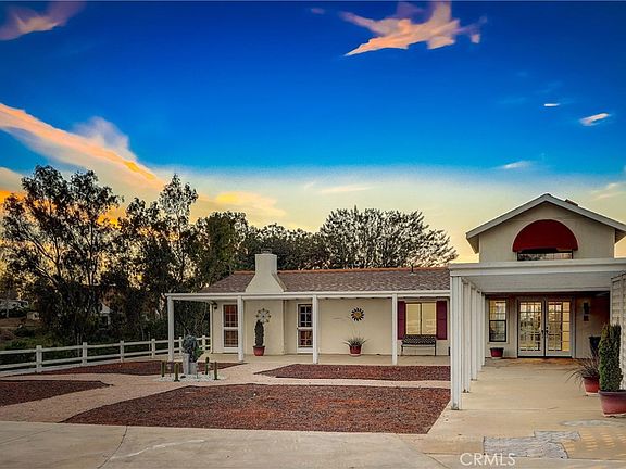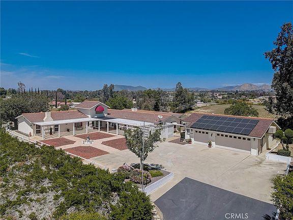 The grand driveway takes you up to this estate-like home. Enter through your double doors into a light and bright entry way with high ceilings and panoramic hillside views. You are greeted by a spacious living area with sliding glass doors allowing an abundance of natural light to flow through the open floor plan. The formal dining room is perfect for entertaining guests. Just through the door you will find the family room with stunning accent walls and a gas fireplace. The adjacent additional dining room with wet bar, sink, and mini fridge is open to the kitchen. The kitchen is a chef's dream with a large eat in bar, white cabinets, dark counters, pantry, and plenty of cabinet and storage space. The appliances include: range with hood, dishwasher, electric oven, electric cooktop, microwave, refrigerator, self cleaning oven and trash compactor. The sink overlooks the stunning backyard views. The primary room is a retreat and features a fireplace and seating area several glass doors. The en-suite bathroom boasts a separate soaking tub, walk-in shower, and vanity. The additional 3 bedrooms are each a generous size. The backyard is perfect for entertaining guests and features a large covered patio and views of the rolling hills. Other home features include: sun power solar, partial copper plumbing, electric water heater, SEER rated cooling, ENERGY STAR heating, upgraded light fixtures, new LVP in 3 bathrooms, door knobs replaced, newly painted rooms, freshly painted exterior shutters, updated landscaping, ceiling fans, 1 single car and 1 two car garage, included washer and dryer, and more! To see it is to believe it!