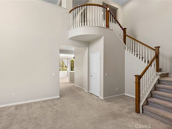 Spacious corner lot in Clayton Ranch with lush landscaping and tall palm trees. Inside find a fantastic floorplan for multi-generation living. Enter to tall ceilings extending up to the second floor and the open loft area. Pass the formal sitting room or open office to the right and large dining room to the left. Continue into the open floor plan of the kitchen, breakfast area and family room with a fireplace. Downstairs laundry has plenty of storage and a sink. Double-deep 4+ car garage is easily accessible to the home. Upstairs find 4 bedrooms plus the family-room-sized loft. The spacious master bedroom has space for a desk or secluded seating area. Downstairs bedroom with a full bathroom makes 5 total bedrooms. Clayton Ranch is conveniently located near the freeway and shopping at Clinton Keith and I-15 to the west with a short drive to I-215 and Murrieta shopping (including the new Costco) to the east.