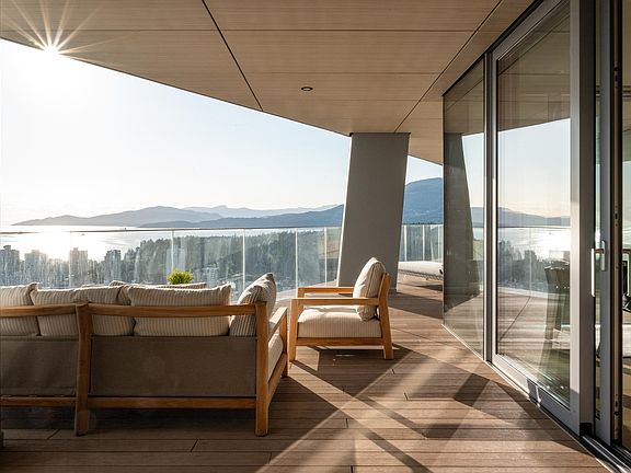 A stunning achievement—Alberni by Kengo Kuma and developed by Westbank, a visionary for world-class architecture. This exceptional residence spans over 1,800 sf of refined interior and features a 614 sf S/W view terrace, which blurs the boundary between indoor and outdoor living. It also features an oversized soaker tub, composite decking, and a Japanese stone garden. Enjoy quintessential Vancouver views of English Bay, mountains, Stanley Park, and the expansive cityscape: impeccable finishes, include oak h/w flooring, sheer draperies and maple wood feature walls. Spa-style appointed baths are clad in travertine and Douglas Fir ceiling slats. Amenities are extensive and artful, and the lobby features a Fazioli Piano and a reception desk by the architect: a prized home for the discerning.