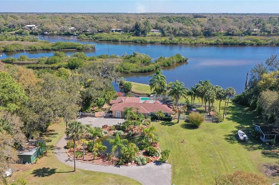 Take me to the River! Need space from your neighbors? How about 3 1/2 acres on the Braden River, with 277 feet of water at your backyard. An added plus is A-1 Zoning which opens the door to endless possibilities. Relax by the beautiful pool within your nature retreat and observe the Florida wildlife, from Otter to Osprey to the most amazing fish you can only dream about. You may see a 40 inch Snook, or a 52 inch Gar, or even a 3 foot Yellow Jack. When you're not observing nature at her finest, you can keep busy with gardening, creative landscaping (without association rules), or possibly adding another home or two! The property is set back from the road with a long driveway. Adding to the privacy, is a tropical front yard oasis, with palm trees and a rock waterfall. The living room includes a fireplace to add to your relaxed state of being. The spacious owner's suite has a two-sided fireplace, connected to the ensuite bath, which includes dual sinks and an alluring bathtub. The kitchen is a chef's delight, with fine granite countertops, beautiful 42" wood cabinets and ample counter and cabinet space. Enjoy boating? You can set sail from your own private dock in the backyard of your Gulf access home. The uninhibited night sky makes this a stargazers dream. This property delivers privacy and seclusion, yet just around the corner from shopping, dining, medical facilities, Braden River High School and I-75. Just a short drive to the sandy Gulf beaches, the Sarasota/Bradenton Intl Airport and within 45 minutes of the Tampa/St Pete metro area. Where the river flows, there is life; schedule your visit now.