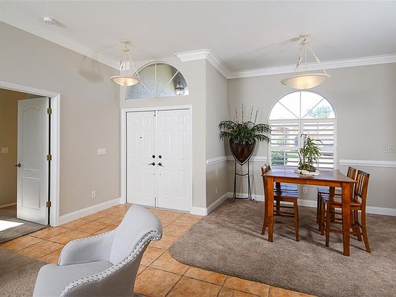 Outstanding home at an incredible price. Move-in ready with tons of upgrades: new cabinet doors, new interior paint, crown molding throughout, over sized baseboards throughout, recessed lights on dimmers throughout, gorgeous light fixtures, plantation shutters, wired for surround sound, nearly new carpet, side by side refrigerator, tile back-splash, extended screened lanai, fenced backyard, and more. Open split floor plan with high 10" ceilings! All this in the highly desirable Trails community: great location, community pool just 2 blocks away, tennis and more. Hands down the best home and deal in the area.