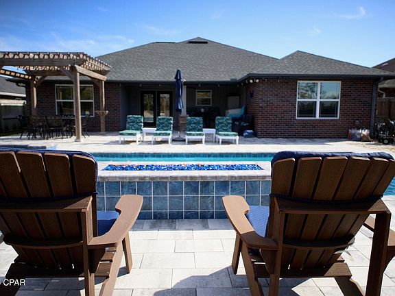 Welcome to your dream retreat! This beautifully maintained 3-bedroom, 2-bathroom home is tucked away on a quiet cul-de-sac in one of Panama City's most desirable neighborhoods. Built in 2017, this residence combines modern comfort with high-end touches throughout. Step inside to a spacious open-concept floor plan featuring elegant vinyl plank flooring, 9-foot ceilings, and stunning tray ceilings that add a touch of sophistication. The oversized guest bedroom provides plenty of space for visitors or a comfortable home office setup.The kitchen and living area flow seamlessly for entertaining, while large windows invite in natural light and offer views of your private backyard oasis. Out back, you'll find your own resort-style escape—a sparkling pool with an attached hot tub, surrounded by a beautifully landscaped patio, complete with a fire feature for those cozy Florida evenings.With both form and function, this home offers exceptional curb appeal, energy efficiency, and a tranquil setting that's still convenient to shopping, dining, and local schools.