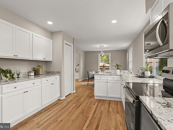 Back on the market, buyer financing fell through. Beautifully renovated Colonial with a remodeled kitchen and bathrooms, new roof, windows, water heater, HVAC, electric panel, and more! Gorgeous hardwood flooring throughout the main and upper levels, and a fresh soothing color palette. The eat-in kitchen features granite countertops, a breakfast bar, white cabinets, recessed lighting, and a dining area accented with a stylish glass pendant chandelier. Off the kitchen you’ll find a powder room and laundry room with access to the backyard. The primary bedroom has an attached full bath updated with two granite vanities, and an oversized shower with dual shower heads. Three additional bedrooms and a guest bath detailed with decorative tile inlay, complete the upper level. The lower level provides a powder room, abundant storage space, a mudroom with outdoor access, and a recreation room with new carpet and a wood burning fireplace in brick surround and a sliding door to the backyard. Backing to trees for privacy, you’ll enjoy outdoor living on the expansive patio and covered front porch, and there’s a 2-car garage offering additional storage space.