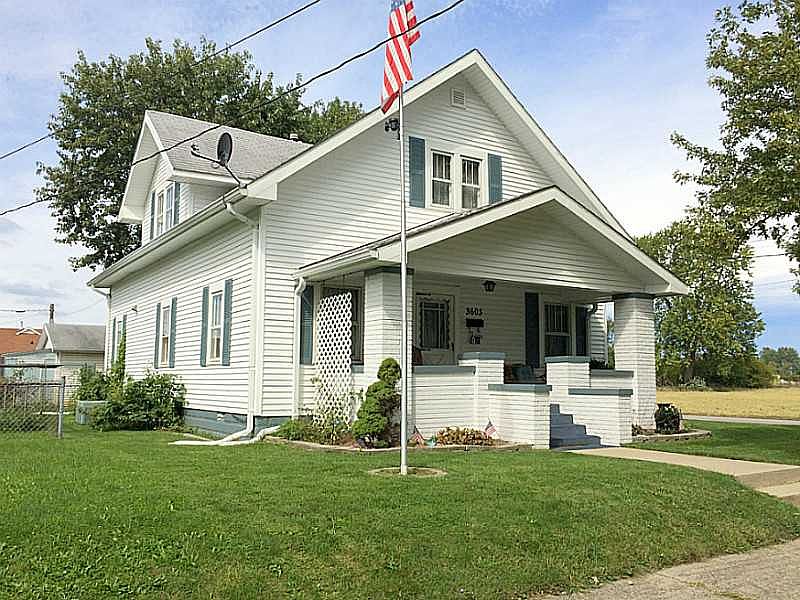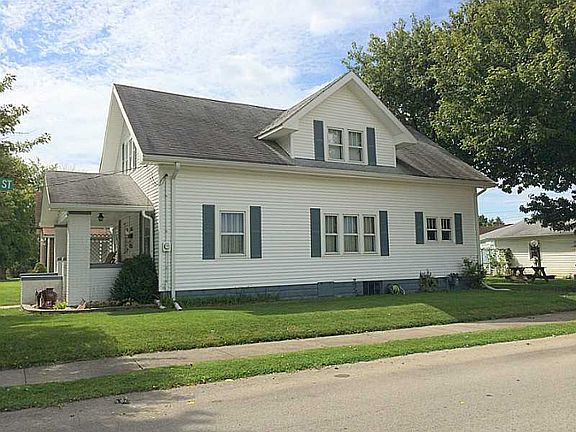 Lots of space for your money! Very nice 6 bedroom home features 2 full baths, dining room and den. Upcoming holiday gatherings will be easy with open living and dining rooms! Home has an unfinished basement, perfect for additional storage. Enjoy cool fall evenings on the covered porch. Additional features include a large 2 car detached garage with a workshop and also a storage barn. All appliances included!
