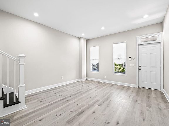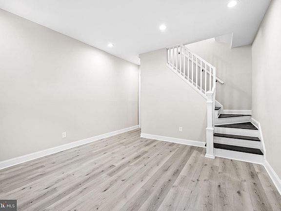 Welcome to this beautifully renovated 3-bedroom, 1.5-bathroom interior townhome in the sought-after Waverly community of Baltimore. This home greets you with a charming front porch, setting the tone for the warmth and style found within. The main level features luxurious vinyl plank flooring throughout, offering both durability and elegance. The living room is bathed in light from recessed lighting, while the dining room boasts modern pendant lighting, creating an inviting space for meals and gatherings. The well-appointed kitchen is a chef’s delight, complete with stainless steel appliances, quartz countertops, recessed lighting, and a ceiling fan. Conveniently located between the dining area and the kitchen is a stackable washer/dryer closet, ensuring laundry is a breeze. The main level also includes a stylish half bath for guests. Upstairs, you’ll discover three spacious bedrooms, each featuring luxury vinyl plank flooring and ceiling fans for added comfort. The full bathroom is a spa-like retreat with a tub/shower combo and a skylight, flooding the space with natural light. The lower level remains unfinished, providing ample storage space or the potential for future customization. The fully privacy-fenced rear yard is a serene oasis, perfect for gardening or creating your own patio retreat. Situated close to Johns Hopkins University and an array of shops and restaurants, this townhome offers the perfect blend of convenience and tranquility. Don’t miss the chance to make this stunningly updated home yours!