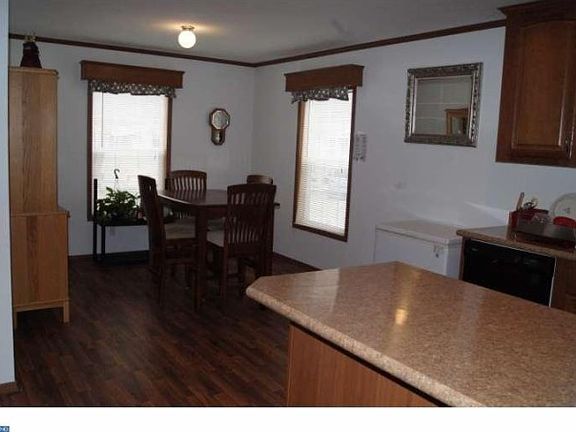 You'll love this corner front porch style modular home with open floor plan and hardwood laminate flooring throughout. Modern kitchen has an island, recessed lighting, dual sink, and brand new black appliances. Over sized laundry room has brand new Maytag washer and dryer and a side exit door with ramp that is accessible to people with physical disabilities. 3 bedrooms, 2 full baths and plenty of storage. Shed included. Great opportunity to own this 3 month old home. Buyer must contact Penn Valley Terrace and fill out an application prior to writing offer. No dogs permitted. Lot rent is $588 per month.