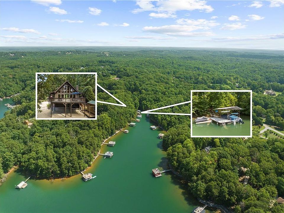 Welcome home to your meticulously maintained log cabin on Lake Lanier with a single-slip dock at an amazing price! Whether you’re looking for a full-time residence, a cozy weekend getaway, or an investment property to add to your portfolio...this is the one. As soon as you walk through the front door, you are going to love the open concept with vaulted ceilings, featuring a stacked stone wood-burning fireplace perfect for the cooler months in Georgia, and the gorgeous wall of windows providing an abundance of natural light. The great room is open to the renovated kitchen with stainless steel appliances and custom quartzite countertops. The great room leads seamlessly to the massive wrap-around deck where you will love entertaining all of your new friends (now that you have a lake home!) This very special home has seasonal views of the lake during the fall and winter months and is situated on a large .71-acre lot with plenty of room for parking, a fenced yard, mature hardwood trees for privacy and room to grow. The home is walkable to Duckett Mill park and boat ramp, and you’ll love this beautiful Lodgehaven lake neighborhood with well-maintained homes and no HOA! The large owner's suite is located on the main level, with a spacious walk-in closet and brand NEW professionally designed bathroom featuring a double vanity with Quartz countertops, new shower with Italian tile, paint, fixtures, and LED backlit mirrors (New shower glass door to be installed before 8/16). Upstairs features a small loft overlooking the great room, a full bathroom with a double vanity, and 2 bedrooms with vaulted ceilings. Make your way to the terrace level where you'll find a two-car garage with epoxy flooring, the laundry room and what might become one of your favorite rooms in the house...a bonus room with a bar and mini-fridge, perfect for a private office or bunk room! It is approximately a 2-minute walk to your covered single slip dock that sits in a quiet and wake-free cove, plus shoreline stairs with ramp. A property this updated and well maintained on Lake Lanier with a private single-slip dock just off of the main channel at this price point is hard to come by. You're only a 15-minute boat ride to Gainesville Marina, Port Royale and Athens Boat Club, so you’re close to fuel and lakeside dining no matter which direction you go. It is also ideal by land with easy access to HWY 53 and just a short drive to the thriving Gainesville Square or GA-400 with access to the North GA outlets, Cumming City Center, Downtown Alpharetta or the charming town of Dahlonega. This is truly the perfect lake home to enjoy all 12 months of the year in that you're going to love calling "home." It is a very special place that has held many great memories and now it is just waiting for you to make your own! Other notable features include: A new roof (2020), water heater (2 years young), HVAC systems (2018 and 2019), radon system (installed 2020), new decking on the dock (2020) and new dock stairs (2022).