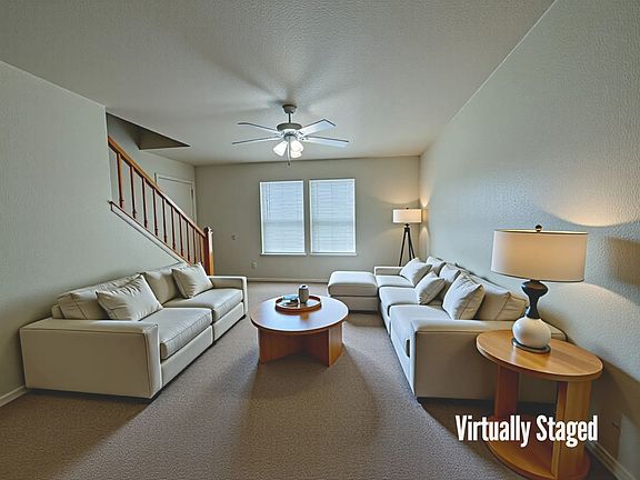 Two-story 2-bedroom 1.5-bath duplex townhome featuring carpet in the bedrooms and vinyl flooring throughout the main areas. The kitchen includes all white appliances and offers a clean, functional space. Comfortable layout with practical finishes throughout. Come by our office to see this property today.