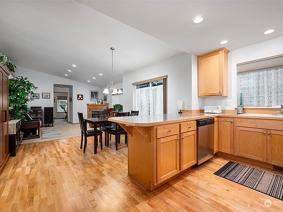 Well-appointed 3-bedroom, 2-bath condo located in one of the best locations in Mariner's Ridge. This home features south and east-facing windows that fill the space with natural light and offer distant views of Mt Baker. The open, one-level floorplan features stunning hickory hardwood floors, an amazing kitchen with stainless appliances and floor-to-ceiling cabinets, vaulted ceilings, recessed LED lighting on dimmers, and a spacious laundry room. The expansive primary suite includes a walk-in closet with new custom built-ins and a luxurious ensuite bath with double vanities, quartz countertops, and towel warmers. With its convenient location and low maintenance, this condo makes a great second home or primary residence for carefree living.