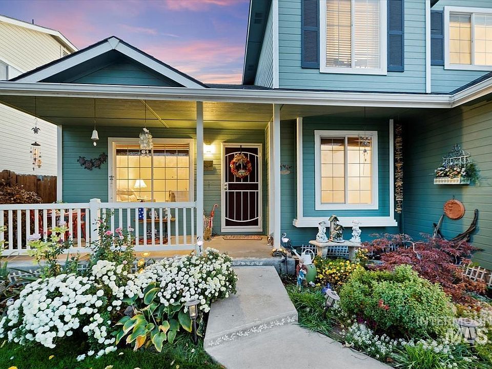 HUGE BACKYARD ON .24 ACRE LOT. The captivating park like curb appeal will blow you away with when you drive up to this beautiful home in the highly desirable Raintree Meadows. Backing up to a beautiful irrigation creek to give you separation and privacy from your back neighbors. Both the front and the back have over sized covered patio's and you will find not 1 but 2 included storage sheds. Come inside to this cozy home where you will find a vaulted ceiling in the formal living room and on the other side of the home a separate family entertainment room with laminate flooring throughout. The kitchen has rich quartz counter tops, newer stainless steel appliances with a built in microwave and a walk in pantry. The furnace and water heater are both only 4 years old and are in great working condition. Raintree Meadows has a lot of walking paths, friendly neighbors, and is close to Lake Lowell, shopping, dining and entertainment.