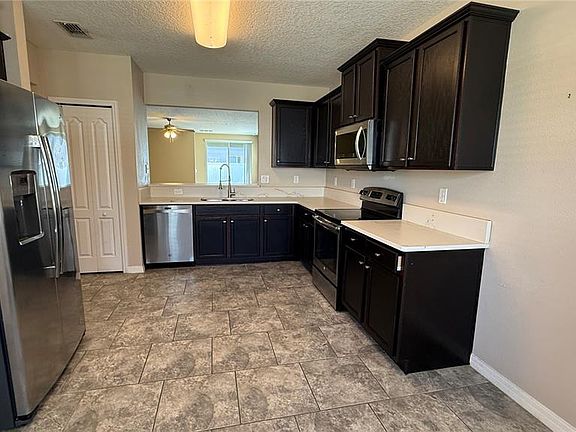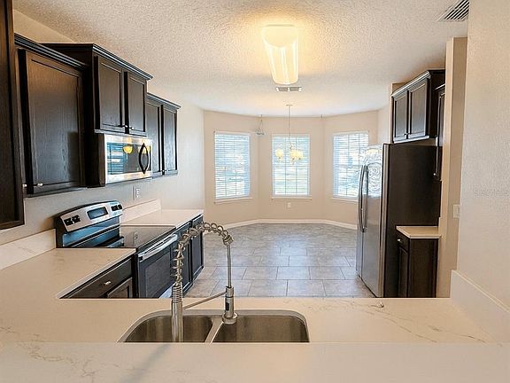 Inside this beautiful home, in a gated community, you'll find tasteful upgrades throughout ceramic tile flooring, Quartz countertops, and stainless steel appliances. The kitchen features a cozy eat-in nook with a bay window and a convenient breakfast bar that opens to the spacious living and dining areas ideal for relaxing or entertaining guests. The master suite is a true retreat, complete with abundant natural light, a walk-in closet, dual sinks, a separate shower, and a relaxing garden tub. Step outside to the back patio, a perfect spot to enjoy the Florida weather or host your next gathering. Outdoor lovers will appreciate the home's prime location just minutes from boating and fishing at beautiful Lake Harris and the Hickory Point Recreation Area. Plus, you're close to medical facilities, shopping, restaurants, and more. This home offers the lifestyle you've been looking for don't miss it!