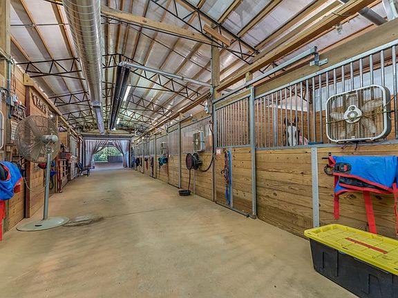 FREDRICKS FARM COMPLEX. Professional equestrian facility. 36 x 130 barn all with heat and air, 15 stalls, wash rack, tack room, feed room, bathroom, office and lounge area, connected to 70 x 150 ft. covered riding arena with shaving pit and hay pit. Five paddocks and one larger pasture with run in shed. Beautiful pond and stream on property. 3 BR, 3-1/2 BA farmhouse with a beautiful wrap porch.