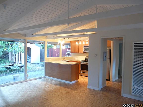 Rose Brudigam - Agt: 925-746-7650 - Single level, recently remodeled,lite/brite/ really a special home! Updated /upgraded kitchen w/maple cabinets w/quartz countertops, high open beam ceilings, carpet in bedrooms, oak parquet in living room & kitchen. Walls of glass! Creek side setting, private, secluded yard, mature landscaping , a rare find in Downtown Lafayette Large storage shed in backyard.