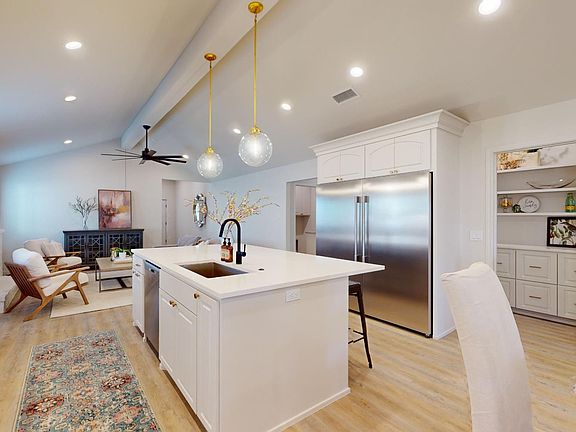 - Breakfast Bar, Built-in Features, Ceiling Fan(s), Double Vanity, Kitchen Island, Pantry, Quartz Counters, Storage, Walk-In Closet(s)