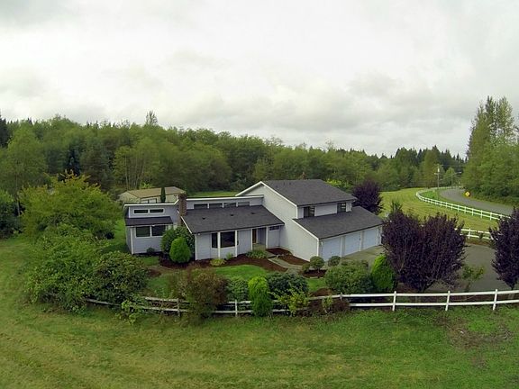 This Fantastic spacious home is on 5.5 acres. 3 car garage, shop/barn with 2 stalls and tack room. 2 Fully fenced pastures . Freshly painted interior, new carpet . Lg entertainment sized deck & RV parking. Rm for extra vehicles also.Utility rm w/ 1/2 bath & cabinets. Multi level hm . Office w/ built in cabinetry & own back entry. Great room has a spectacular crystal chandelier.!LR has fp & fam room has new pellet stove.Breakfast nook with marble bar. Newer 50 yr roof .Upgraded central heat pump.