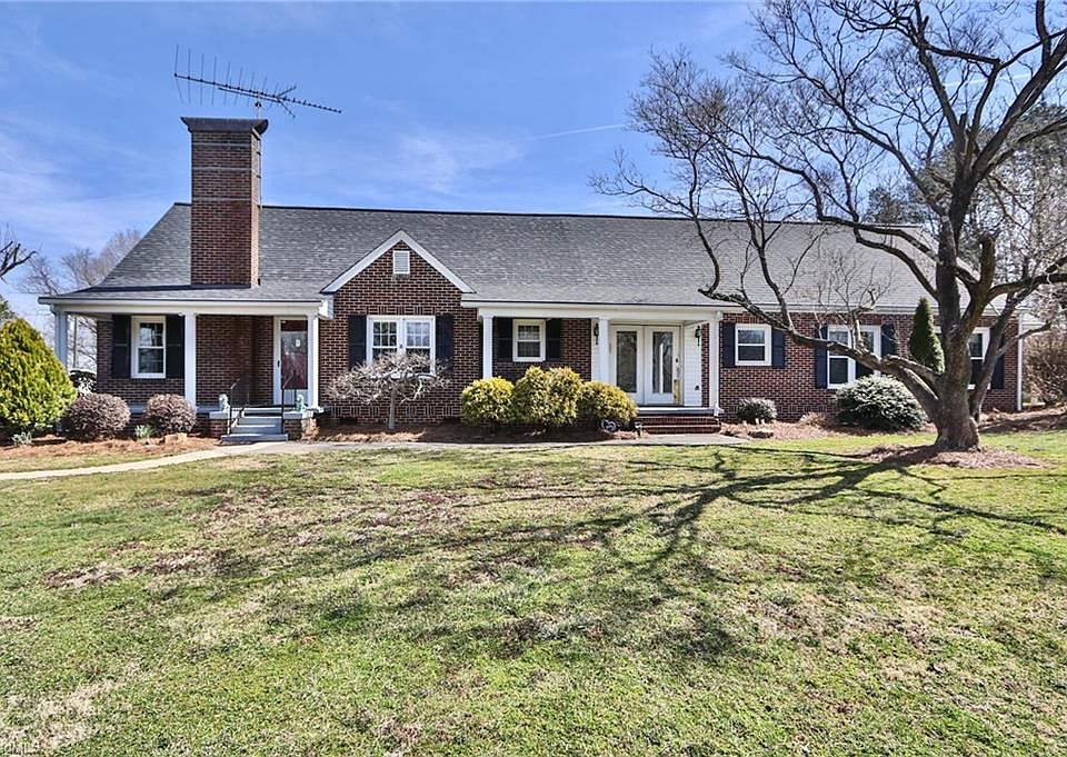 Charming Brick ranch style home sitting on over 5+/- acres. 4 bedrooms per septic, 3 bath, stunning original hardwoods throughout, upper bonus, spacious bedrooms, wood burning fireplace in the living room, crown molding, open kitchen and dining room, great for entertaining the entire family, fantastic yard perfect for enjoying time outside. 4 car detached garage, ample room for storage. Under 15 min to local restaurants and grocery stores and under 45 minutes to Winston Salem for unlimited restaurant options, entertainment and more!