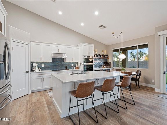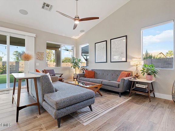 MODERN ELEGANCE MEETS COMMUNITY CHARM - Meticulous, updated corner lot home is the perfect blend of sophisticated design and practical functionality. Show stopping kitchen, family room, backyard oasis and pool, make this home unlike any other. Expansive open-concept space completely reimagined to create the perfect environment for everyday living/entertaining. New appliances, custom tile and cabinetry, and stylish dry bar complete with dedicated wine/beer refrigeration and built-in wine rack is the perfect setup for hosting gatherings that flow effortlessly between indoor and outdoor spaces. Vaulted ceilings, abundant natural light, premium finishes throughout. Attention to detail sets the tone for the quality care that defines every aspect of this home. Not just beautiful, it's smart. Luxurious wood-look porcelain tile flooring, oversized pine baseboards, dimmable LED lighting, updated electrical, custom primary bath and more. Ecobee smart thermostats, Chargepoint Level 2 (50A) EV charger, and energy efficient appliances. Beyond the exceptional features of the home itself, you'll discover a neighborhood that truly embodies the meaning of community.The location offers the perfect balance of peaceful residential living with convenient access to everything you need - parks and walking trails within easy reach, excellent schools, minutes from shopping and dining at SanTan Village, Epicenter at Agritopia, and Verde at Cooley Station. Quick access to gyms, grocery stores, and coffee shops.