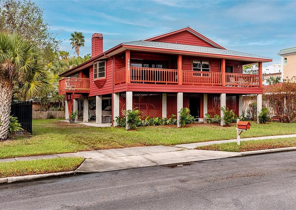 This elevated home on concrete piers set in concrete foundation, nestled in the coveted Don CeSar neighborhood on an extensive lot, offers a serene and discreet setting on a peaceful street. It is perfectly positioned within a leisurely stroll to the beach and showcases an unparalleled waterfront location on McPherson Bayou that provides quick boating access to Boca Ciega Bay, the Gulf of Mexico, and Tampa Bay. As an added perk for residents in this exclusive enclave, the property also enjoys exclusive access to its very own private beach. This residence is a rare gem, presenting an array of opportunities for those seeking inter-generational living, a potential source of supplementary rental income, or a vision of creating an expansive single-family retreat. The primary residence, generously proportioned, offers three bedrooms and two baths, while the substantial mother-in-law suite is an added marvel, gracing the property with an extra bedroom, bathroom, a private balcony, and its own living areas and separate entrance. Stepping to the front of this home, you're greeted by a full-length balcony that unveils breathtaking, panoramic views of the tranquil Intracoastal. The interiors of this residence are graced with vaulted ceilings that soar above, new energy-efficient skylights that were just installed a year ago and a wood-burning fireplace with a custom stone mantel and hearth, an inviting bay window, and an additional balcony that completes the main living area. Remarkably, two of the three bedrooms are equipped with their own attached full baths and private balconies. There is a whole-house built-in vacuum system, a dumbwaiter for groceries and packages, and a supplemental water heater for instant hot water in the kitchen. Beneath the residence, a capacious under-home parking area will accommodate up to four vehicles, further enhanced by built-in kayak storage for those who cherish the waterfront lifestyle. An expansive workshop, featuring double doors, generously provides space not only for your golf cart but also caters to any additional storage requirements you may have, ensuring that your living space remains uncluttered and organized. Conveniently situated close to the Pinellas Bayway, easy access to I-275, makes commuting a breeze to Downtown St Pete and Tampa International Airport. Furthermore, the vibrant array of shops and restaurants that grace the beautiful St. Pete Beach are within easy reach, allowing you to savor the essence of coastal living at its finest. Recent updates, including a New roof replacement and energy-efficient skylights (2022), Dual Zone AC systems replaced on both sides (2020), a concrete seawall (2016), and an entirely new dock, pilings, and tie-up slip built in February 2023 with composite decking have been thoughtfully added, elevating the quality and comfort of this already remarkable residence. Embrace the opportunity to make this unique property your own, where inter-generational living, rental potential, and the dream of a vast single-family retreat converge seamlessly into an extraordinary waterfront haven.