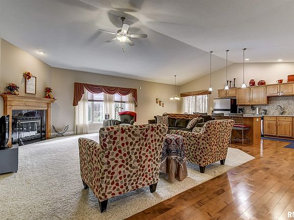 Beautiful four bedroom ranch in Lincoln Greens Estates. Hardwood floors in foyer and formal dining area. Vaulted living room with open floor plan and fireplace. Well appointed kitchen features island with seating, nice sized pantry, maple cabinets, granite counters, stone backsplash, and tile floors. Informal dining area in kitchen area. Split floor plan with large vaulted master suite and access to covered patio. Ensuite bath offers double sinks with granite tops, jetted tub, walk in shower, and walk in closet. Two additional spacious main floor bedrooms share a hall bath. Full basement is finished with kitchen, third full bath, fourth bedroom, and bonus room (could be 5th bedroom, no full egress), family room with surround sound, and unfinished storage area. Backyard is professionally landscaped with an irrigation system for the yard. This home is located in Rochester School District and the City of Springfield.