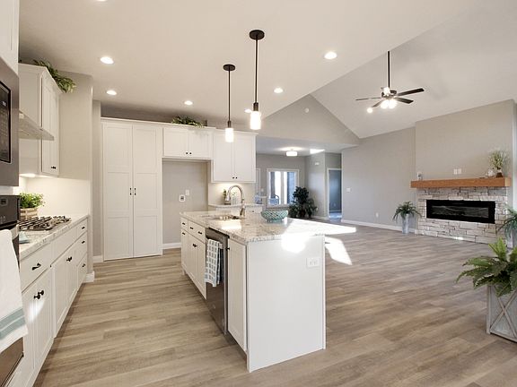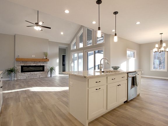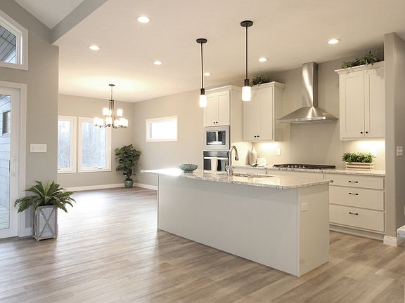 Model Home-New home by award-winning Spoon Construction. Craftsman exterior. Open floorplan features gourmet kitchen w/custom cabinets, granite c-tops, SS appliances, island w/bar, "secret" walk-in pantry. Main floor home office and 1/2 bath. Awesome main floor master suite w/tile shower, dbl bowl granite vanities, fog free mirrors, towel warmer & large walk-in closet. Family room w/vaulted ceilings, contemporary fireplace with mantle & stone below & lots of windows. Wifi thermostat, laundry w/sink & separate mud room, & large covered deck. Finished 3 car garage w/keypad entry. Unfinished Bsmt w/ room for future large rec, bedroom, bath, theatre, exercise etc. Basement can be finished for additional $.