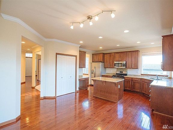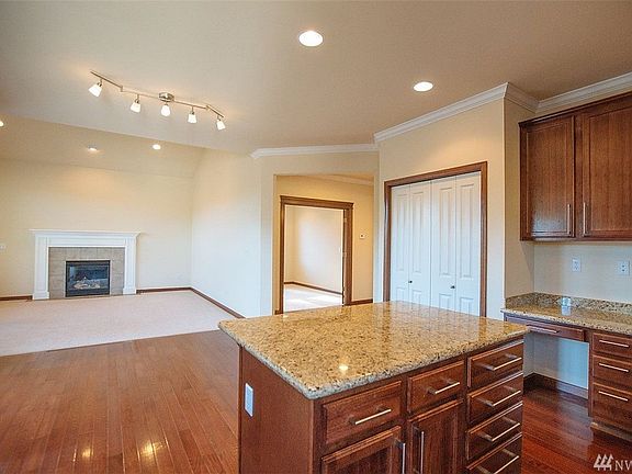 Fabulous two-story presents open concept floor plan with office on main, light-filled living spaces, vaulted ceilings, extensive hardwood-style flooring, French drs, tasteful architectural detailing and more. Ideal island kitchen features nine ft ceilings, granite countertops, SS applcs, and opens to family rm with gas frplc. Upper level bdrms include master with deluxe bath, walk-in closet; full guest bath; bonus/flex space. Deck plus patio for outdoor living. Oversized garage with workbench.
