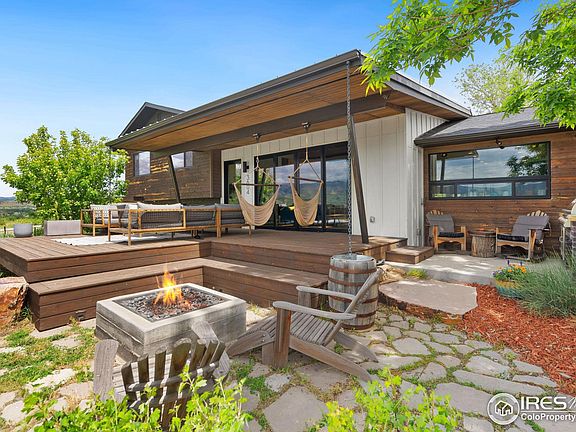 Rucker Hill redesigned masterpiece! Located about 15 minutes from Old Town Square in Fort Collins and perfectly situated on 5.45 acres at the top of Mesa Dr. with incredible 360-degree views of the foothills and valley with access to miles of single-track trail right out the front door, this is what living in Colorado is all about! Open and bright, the amazing kitchen features a massive island with quartz counters, high-end stainless-steel appliances including 6-burner gas range/oven, 2 dishwashers, subzero refrigerator, wood floors, and beautiful cabinets. The great room boasts a floating wood-burning fireplace, wide plank wood floors, large dining area, and a wall of glass sliders to take in the majestic mountain views. The private primary bedroom has stylish sliding door, wood floors and a 4-piece bath with walk-in shower and dual vanities. Enjoy the tranquility and incredible views from the large covered front deck with fire-pit or take in the stars from the private back patio. Additional features include massive detached 3-car garage with oversized door, sprinkler system, shed, and room for horses. Homes like this don't come around often!