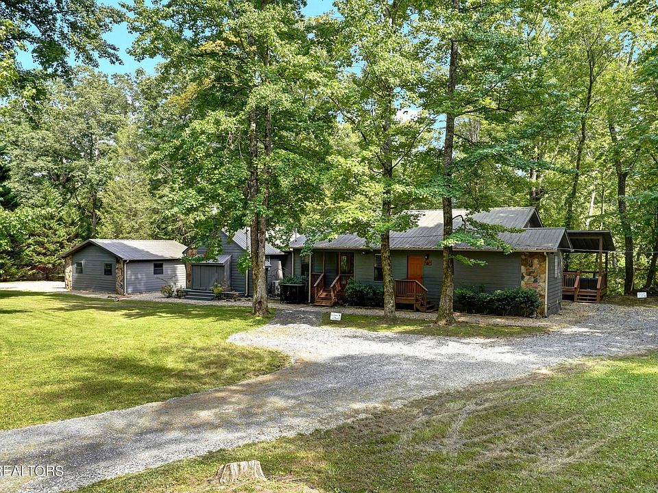 Looking for a great nightly rental opportunity? This Property is currently listed on Airbnb and has grossed $55,885.64 as of the end of August for 2023 (it grossed $88,870.68 in 9 months in 2022). This property host 3 - one bedroom units on 1.63 level acres with 300 ft. of creek frontage and seasonal mountain views. All units are one level, private and all with beautiful views of Cosby creek. There is also room for expansion. 2 car garage could be converted to 4th unit and there is still space on right side of property to build a tiny house or add an RV. New 2nd driveway added in 2022. New Exterior paint and stain. Unit 1 has a queen bed, sleeper sofa, new kitchen, new flooring in LR, 2 gas fireplaces, screened porch and new hot tub. Unit 2 is a Studio with King bed, vaulted ceilings, stunning kitchen, with double ovens, gas range, quartz counter tops, wood burning fireplace, covered porch and new hot tub. Unit 1 and 2 can also adjoin to make a larger unit. Unit 3 has King bed and queen sleeper sofa, sunroom and large bedroom with new kitchen and luxury bath w soaker tub. New HVAC system in all 3 units and new interior paint throughout. To top it all off, you are on rushing Cosby Creek at one of it's deepest points. No flood insurance required. Sold furnished with existing reservations. There are so many options with this property, you could even live in one unit and rent the other two. Easy access off of 321N, near popular Carver's Orchard within 30 mins of Gatlinburg or 40 mins to Hot Springs, NC. Buyer to honor existing reservations with current mtg co. DO NOT ENTER PROPERTY WITHOUT AGENT Owner/agent