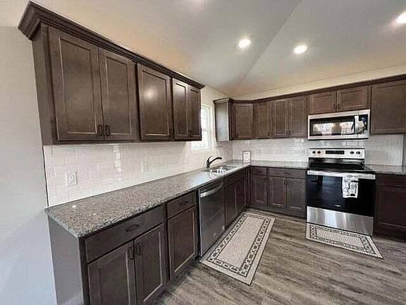 Don't miss out on this stunning remodeled ranch style home with a finished basement! You'll be greeted by the bright living room with tall ceilings, the open concept kitchen features granite counters, stainless steel appliances, eat-in kitchen island, plenty of space for your kitchen table, and french doors leading you to the large patio. There are 3 great size bedrooms on the main level with a full bath. The basement offers a very spacious primary bedroom with an en suite full bath, a finished laundry room, and a wonderful rec room! With a large concrete patio & huge garage with an overhang, it's the perfect entertaining space!