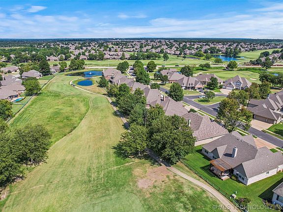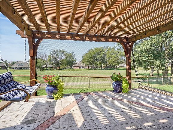 Gorgeous single story home backing to Battle Creek Golf Course in Broken Arrow! Exterior features include full brick, professional landscaping, and an extended covered patio with the BEST pergola in the neighborhood. Inside you'll find vaulted ceilings, with an office plus a formal dining room (AND a butler's pantry!) off the entryway. Oversized living room, with gas fireplace. The kitchen is newly updated, with painted cabinets, countertops, and all new appliances. Newer roof, HVAC, gutters, and garage doors. Large master bedroom, with two separate master bathroom closets. Central vacuum, sprinkler system and new hanging strips in garage for additional storage space. This home HAS IT ALL!