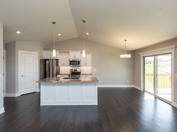 $3000 Builder incentive towards closing costs or upgrades with preferred lender at Wells Fargo. Jerry's Homes Yuma Expanded ranch plan w/ LP Siding & 3 car garage in Clive Angel Park! 1577 sq ft on main level. Features an open floor plan w/ large vaulted great room & spacious kitchen w/ hardwood floors, huge island, granite counter tops, subway backsplash, & stainless appliances. Upgraded kitchen cabinets w/ soft close drawers, doors & hardware. Under cabinet LED lighting. Huge corner pantry. Dining area has sliding doors onto the over-sized covered deck. 3 bdrms including a nice sized master bedroom w/ tray ceiling. Master bathroom has a double vanity & tile shower w/ glass door. Walk-in closet w/ wire rack shelving. Other features include a 1st floor laundry room & nice sized mud room. Upgraded dishwasher, Fridge and ADA toilets included! Garage door windows, wood wrapped mirrors in baths, stone fireplace.