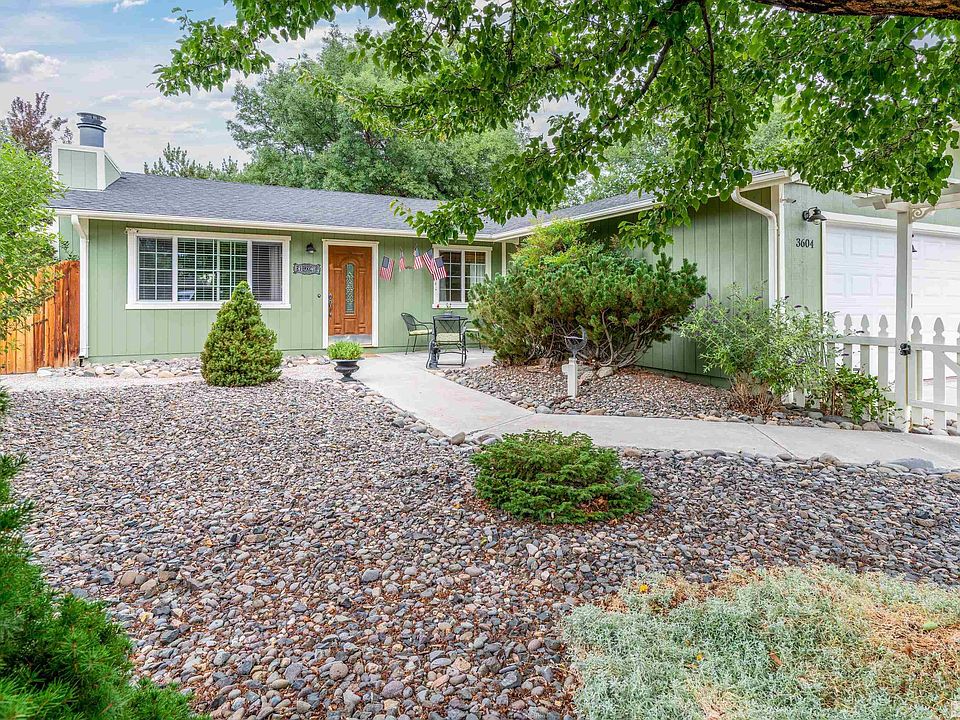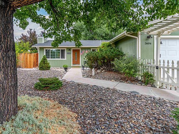 This stunning home has so much to offer. 3 bedrooms, 2 bathrooms, 2 car garage and close to everything you could need. Shopping and schools are a few minutes away and its convenient location in NE Carson City makes a drive to Reno less than 20 minutes. So much has been improved by the owners throughout the years (see list below). This home includes a wood burning fireplace in living room, gorgeous kitchen with matching appliances, RO filter and walk-in pantry., Master suite is large enough for a king-sized bed, 2nd bedroom is also extra-large at 14ftx10ft with hand crafted closet doors, and the 3rd bedroom includes a nice crafting station (easily removed if requested). Front yard has a beautiful white picket fence with trellis and the plants and trees are all on a drip system. Back yard has shade and sun where you want it with mature trees, covered patio, raised garden beds, large storage shed, automatic sprinklers and drip system. Home improvements beginning in 2007 include: Exterior siding replaced and new roof approx. 15 years ago, kitchen counter tops and cabinets, all windows replaced with low-E Pella Windows, 80% efficiency gas furnace, solar tube in hallway, new insulated garage door within the last year, m-bed closet organizer, updated bathrooms, security system, etc. Personal items included in sale: 2 flat-screen TVs with mounting hardware and sound system.