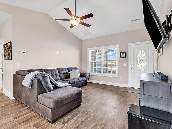 This move-in ready ranch home sits on a hard-to-find 3.13 acre lot with plenty of elbow room between you and your neighbors. NO HOA!!! The home has an open living area, a split bedroom floor plan, front porch and a large 6'x23' rear screened porch that is the ideal spot to enjoy morning coffee, evening cocktails and enjoy this tranquil country setting. The living area has a vaulted ceiling, lighted ceiling fan, and spacious dining area which is adjacent to the large kitchen featuring lots of solid wood custom cabinets, crown molding and knobs, stainless steel appliances, upgraded faucet & deep farm sink, wrap around breakfast counter and huge pantry closet off the kitchen in the laundry room. Master bedroom has a vaulted ceiling and large walk-in closet. Master bath has an oversized walk-in shower with transom window, double bowl sinks with raised height vanity, and linen closet. All bedrooms have lighted ceiling fans. Waterproof vinyl flooring thru-out the home and carpet in the bedrooms. Smooth ceilings, 30-year architectural roof shingles. All appliances convey. The attached 2-car garage is finished and painted inside, has an electric garage door opener, mop sink and pull down stairs leading to a large floored attic storage area. The homesite was pushed 13 feet back from the road at an additional cost, and the septic area was placed on the side of the yard so that a future swimming pool could be placed behind the home. Exterior features include gutters, sodded yard (16 pallets) with irrigation system, and an aluminum fenced backyard area. Desired Aynor school district! Here you will find quaint, friendly small town country living within a few miles of Conway and an easy 45 minute ride to the sandy beaches and glistening blue Atlantic Ocean. Enjoy the fresh grown fruits and vegetables and local honey from the nearby farms. Square footage is approximate and notguaranteed. Buyer is responsible for verification.