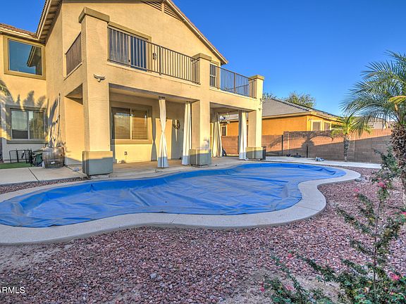 This exquisite property features high ceilings, 3 spacious bedrooms, 2.5 luxurious bathrooms and 1 New HVAC unit. The primary bedroom boasts a private balcony that overlooks a serene backyard & lush green belt, ensuring no neighbors behind for ultimate privacy. An additional bedroom also has its own balcony. Den access at the top of the beautiful staircase. Entertain guests or relax with family under a large, covered patio perfect for outdoor dining. Dive into the sparkling saltwater pool & enjoy the tranquility of your secluded oasis. This home is designed for both comfort and elegance, providing the perfect setting for making lasting memories. Owned/Loaned Solar & so many NEW Updates. Don't miss the opportunity to own this stunning retreat!