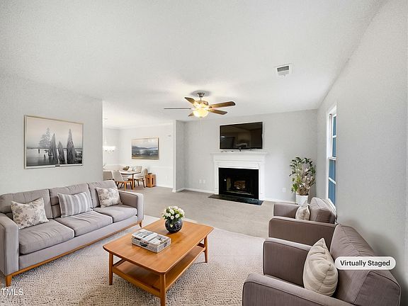 Welcome to a home that exudes warmth and elegance. The living room boasts a cozy fireplace, perfectly complemented by a neutral color paint scheme, creating a serene atmosphere. The kitchen is a chef's dream, complete with all stainless steel appliances.The primary bathroom features double sinks, ensuring plenty of room for morning routines. Outdoor living is equally impressive, with a deck and patio for entertaining and a storage shed for all your outdoor essentials. This property offers a harmonious blend of comfort and style, making it the perfect place to be home. This home has been virtually staged to illustrate its potential.