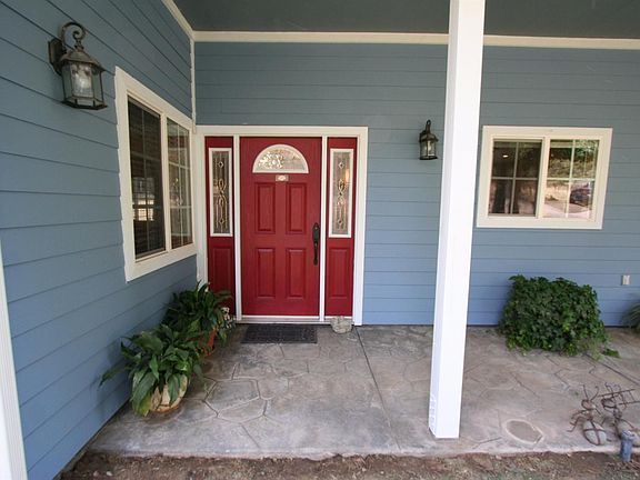 Custom built beauty on 4.68 acres! Designed by owners for ease of living. Southern porch invites you inside to enjoy the pleasing aesthetics of rich wood & earth tones. An open floor plan w/delightful kitchen complete w/plenty of counter/cabinet space. You'll find an office w/internet & huge master bdrm w/slider. Two guest bedrms are spacious. Master bath has huge walk in shower, water closet, big walk in closet. Extras include whole house fan, tankless water heater, ceiling fans, wood stove, large pantry w/automatic light control, abundance of electrical outlets, storage galore, three skylights, (25x25) finished & insulated garage, animal proof fence around yard, automatic entrance gate, plus walk-in gate, Oleander sound barrier between road & house, easy access attic w/cat walk from end to end & drop down storage, two 4x24 foot raised garden beds w/ plumbed sink for clean up, large storage shed, 1,000 gallon water storage tank for fire suppression, existing RV pad plus & solar.