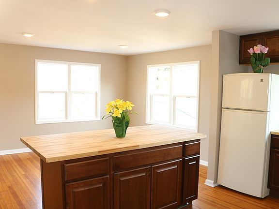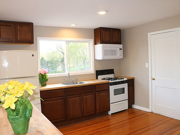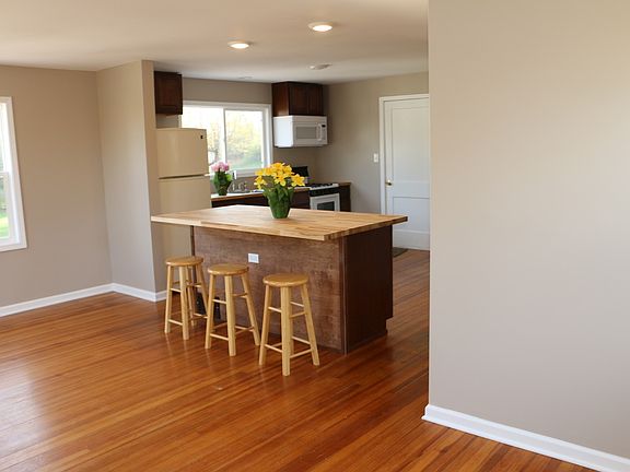 3605 Riverside Dr, Johnsburg. This two story home is loaded with windows allowing natural light throughout. Hardwood floors run through most of the home, except the two bedrooms on main level which have brand new carpeting and extra thick padding. The kitchen features new counters and cabinets, including a huge 3x6 center island with stools. Most of the living space is on the second floor. The third bedroom is on the ground level with its own entrance and private bathroom- like a mini suite. This bedroom is on the lower walk out level of the home. Also on the ground level of the home there is a garage bay that opens up to a large basement storage space of approximately 31x20. The washer and dryer hook-up are located in the lower level, as well. Both Bathrooms have large showers and have been updated. This home has been freshly painted inside with new recessed lights, new ceiling fans, and windows. The rent price includes garbage, water, lawn care, and snow removal. There are two homes on this property, this home is parallel to Johnsburg Road. NO DOGS/PETS ALLOWED. Park by garage or by the outside staircase. If you are looking for a discounted price then we can remove the basement 3rd bedroom and full bath suite and rent it separately? This whole property is for sale and consists of two homes and a row of garages...the buyer would have to honor any lease in place. Tenants may have to allow an occasional showing with 24 hour notice. Credit & background check required.