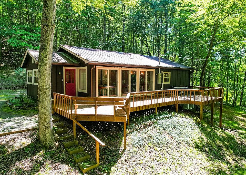 Nestled on unrestricted land with a creek, this cabin sits in close proximity to the renowned Appalachian Trail. And don't worry about feeling isolated—the convenience of shopping is merely 6.5 miles away, with paved roads leading you there. Step inside this charming cabin and be greeted by a delightful living room that seamlessly blends the indoor and outdoor experience, thanks to a magnificent wall of glass doors that flood the space with natural light. Throughout the house, you'll find the rustic allure of wood floors, lending a timeless atmosphere to your abode. Venture down to the unfinished partial basement, brimming with untapped potential for a bedroom for guests or a fun-filled game room. Already in place is a partial bath, giving you a head start on creating the perfect retreat downstairs. Step outside onto the ample deck and be greeted by a landscape bursting with natural beauty. This cabin is not only ideal for your own personal getaway but also presents an opportunity for those seeking a vacation home or considering entering the lucrative world of short-term rentals. With its prime location, babbling creek, and endless potential, this cabin is ready to welcome you.