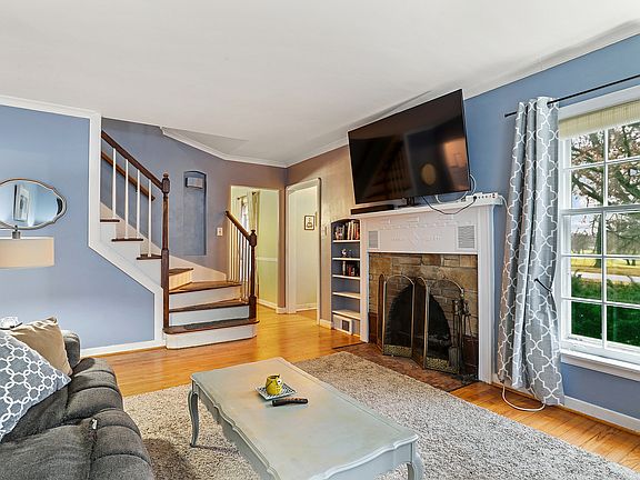 Charming Brick Craftsman on the Golf Course! This 1.5 story has maintained its beautiful architectural design and character from the 1930's with gleaming hardwood floors, wood burning fireplace, rounded archways to the hallways, prominent staircase, formal dining rm with French doors, classic chair rails, and built-ins throughout the home! Convenient First Floor bedroom & Half Bath! The inviting Living room has a large wood burning fireplace for gathering of family & guests. You'll enjoy the pleasant view of the golf course from the formal dining room! The kitchen is loaded with windows & more great views of your wooded back yard and deck! All SS appliances stay! The unique breezeway could serve as an amazing mudroom! Upstairs you'll find two great sized bedrooms opposite of each other with the charming full bath separating them. Full basement offers the opportunity to set up a workout room or family room in the finished space PLUS canning storage rm/pantry, an additional separate storage room AND utility/laundry room! 90% full efficiency furnace installed last year, NEW hot water heater installed '21, SS dishwasher & fridge 2 yrs old! This is a home of charm with a prime location, ready for you to make it yours!