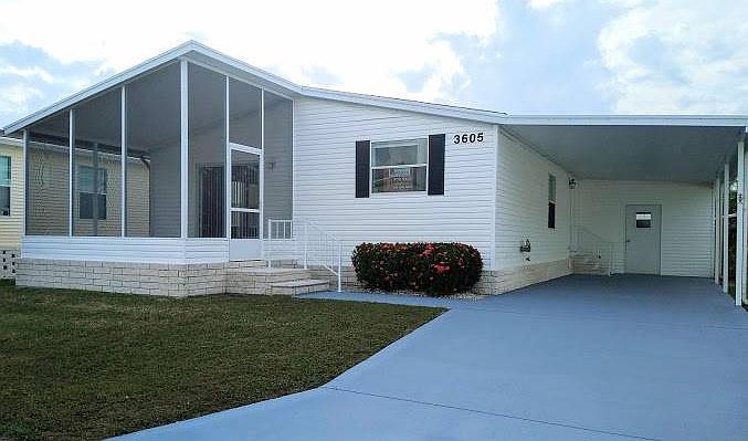A superior remodel! Top notch professional craftsmanship has been put into this entire home from top to bottom! Unfurnished 2000 Palm Harbor 1344 SF is a beautiful blank canvas to begin your Florida living in! Features Travertine marble flooring in common areas (recently stripped, honed & sealed with 2 coats of sealer- reinforced plywood and concrete board subfloors) NEW primer/sealer and paint from ceiling to floor... including baseboards, molding and doors! All new Brushed nickel fixtures throughout entire home (from door knobs & lighting fixtures to MOEN faucets & towel racks) two bedrooms two bath, wide hallways plus an indoor laundry alcove. More upgrades in this pristine clean & bright residence includes 3 Hunter brushed nickel ceiling fans with LED lighting, Entire house has been fitted with new LED components, NEW blinds, all caulking was removed and replaced prior to painting, all new electrical sockets, switches and wall plates... even the front Lanai has new screen PLUS a freshly painted driveway. 2015 AC/Heat 3.5 ton/13 seer, 2015 Rheem water heater, updated Plumbing. This is a very pretty home that is not to be missed! 55 + active community, pet-friendly up to 25 lbs, LOW LOT RENT $478 includes lawn mowing and edging only. Amenities include swimming pool and spa, saunas, tennis court, shuffleboard, Community Clubhouse events, dinners, and more! Close to shopping and dining. All listing information is deemed reliable but not guaranteed and should be independently verified through personal inspection by appropriate professionals. Integrity Mobile Home Sales cannot guarantee or warrant the accuracy of this information, measurements or condition of any property. Measurements are approximate. Lot rent is subject to change.
