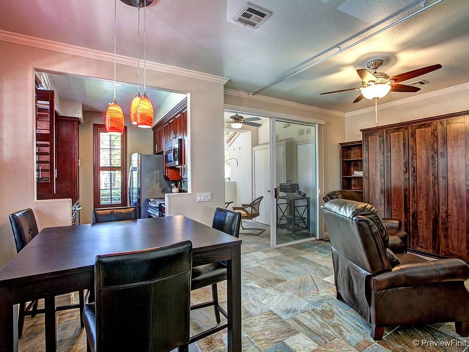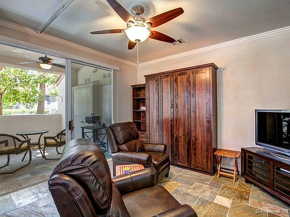 Beautifully upgraded, FULLY FURNISHED one bedroom condo available May 1st. Flexible on Lease period. Super convenient northwest Carmel Valley location. Walk to Del Mar Highlands and One Paseo shopping centers. Quiet Complex. Ground floor entry. Single level/ no steps/slate stone floors. Smart TV's in living room and bedroom. King size bed with new mattress in bedroom. Murphy bed in living room. New full size front load laundry units in patio closet of unit. Private patio with table, chairs and a ceiling fan. Perfect for enjoying your morning coffee. Custom kitchen cabinetry, granite counters. Plantation Shutters. Central AC/Heat. Full stocked kitchen. One covered reserved parking space. Plenty of street parking. Complex has heated pool and spa, gym and bike storage(w/ small monthly fee). Large park across the street. Small dog considered. FULLY FURNISHED UNIT! Flexible lease beginning May 1st. Will consider a small dog.