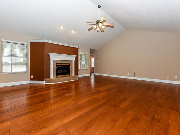Move-in ready beauty is waiting for you! This 3BR 2Bath house features fresh paint throughout, hardwood floors, cathedral ceilings in the oversized great room and master bedroom, gas fireplace as well as a large eat-in kitchen with tons of cabinet space, breakfast bar and stainless appliances! The split bedroom floor plan allows for extra privacy. Master bedroom features cathedral ceiling open into the master bath with walk-in shower, jetted tub, double vanities, water closet and separate his & her walk-in closets. Two guest bedrooms and the guest bath have oversized closets, updated ceiling fans, double vanities and linen closet. Two car oversized garage opens to entry/mud area next to the separate utility room. Beautiful views from your front porch and privacy on the back patio. This house is located only minutes from shopping and dinning but feels like a private retreat on close to .5 acre!!