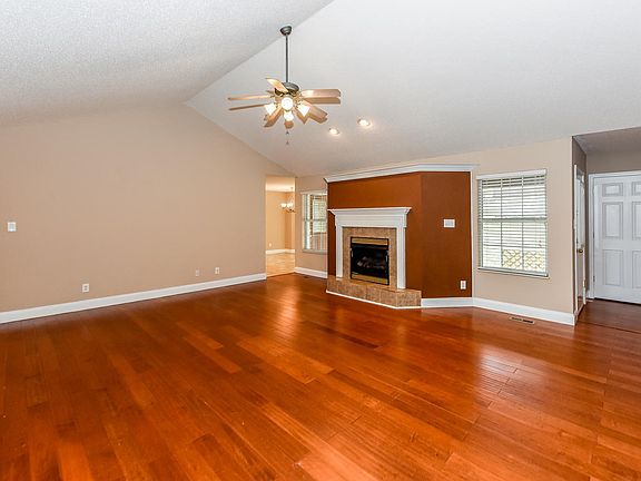 Move-in ready beauty is waiting for you! This 3BR 2Bath house features fresh paint throughout, hardwood floors, cathedral ceilings in the oversized great room and master bedroom, gas fireplace as well as a large eat-in kitchen with tons of cabinet space, breakfast bar and stainless appliances! The split bedroom floor plan allows for extra privacy. Master bedroom features cathedral ceiling open into the master bath with walk-in shower, jetted tub, double vanities, water closet and separate his & her walk-in closets. Two guest bedrooms and the guest bath have oversized closets, updated ceiling fans, double vanities and linen closet. Two car oversized garage opens to entry/mud area next to the separate utility room. Beautiful views from your front porch and privacy on the back patio. This house is located only minutes from shopping and dinning but feels like a private retreat on close to .5 acre!!