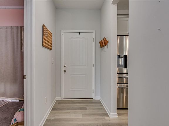 Inside, the home features low-maintenance LVP flooring in the entryway and kitchen areas, while the living room and bedrooms offer carpet. The open-concept layout creates an easy flow between the living room and kitchen, making the space feel bright and inviting.